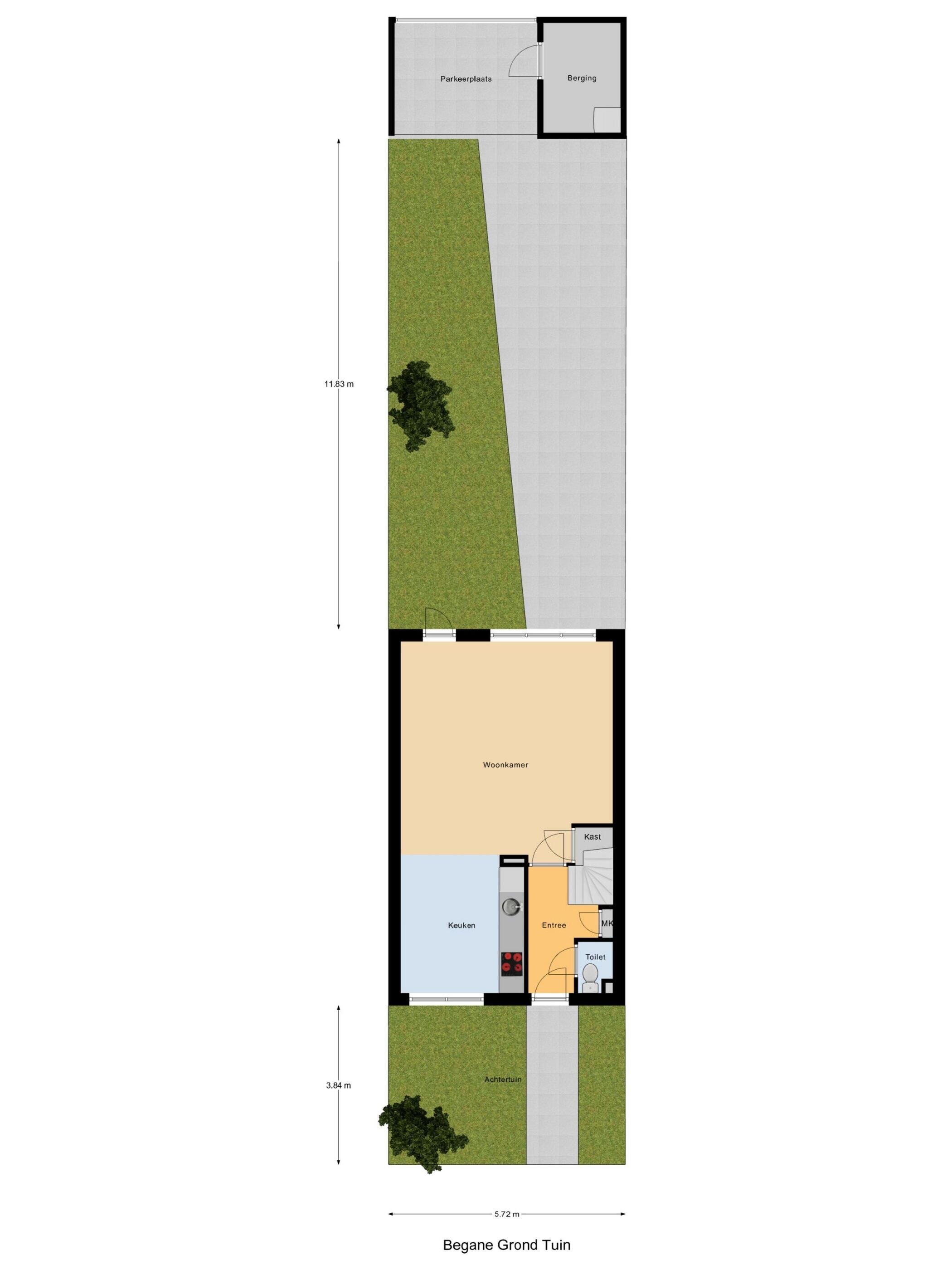 - 68 m² (11,83 meter diep en 5,72 meter breed)